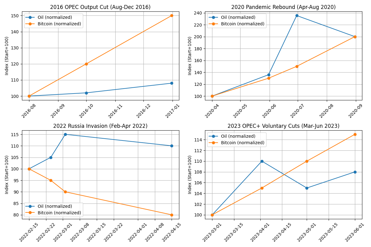 4) 2023: OPEC+ Sürpriz Kesintisi — Petrol Yükseldi, Bitcoin Toparlanmayı Sürdürdü